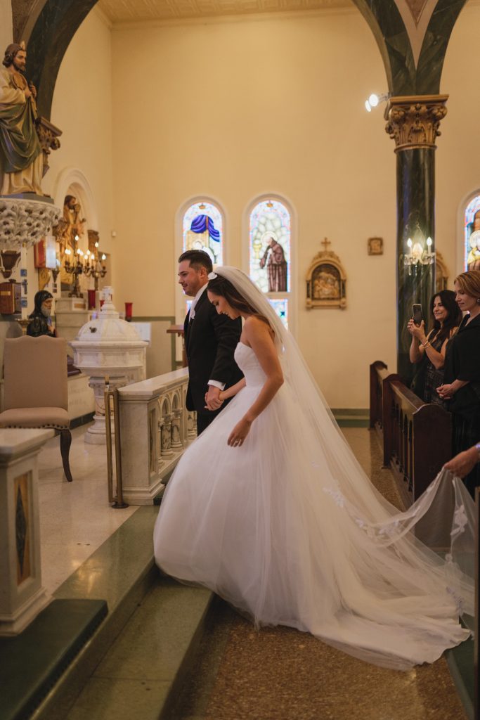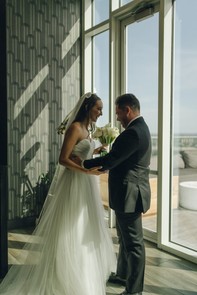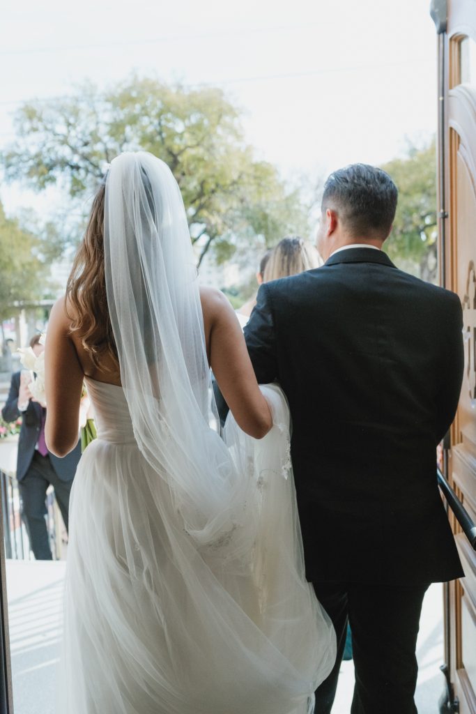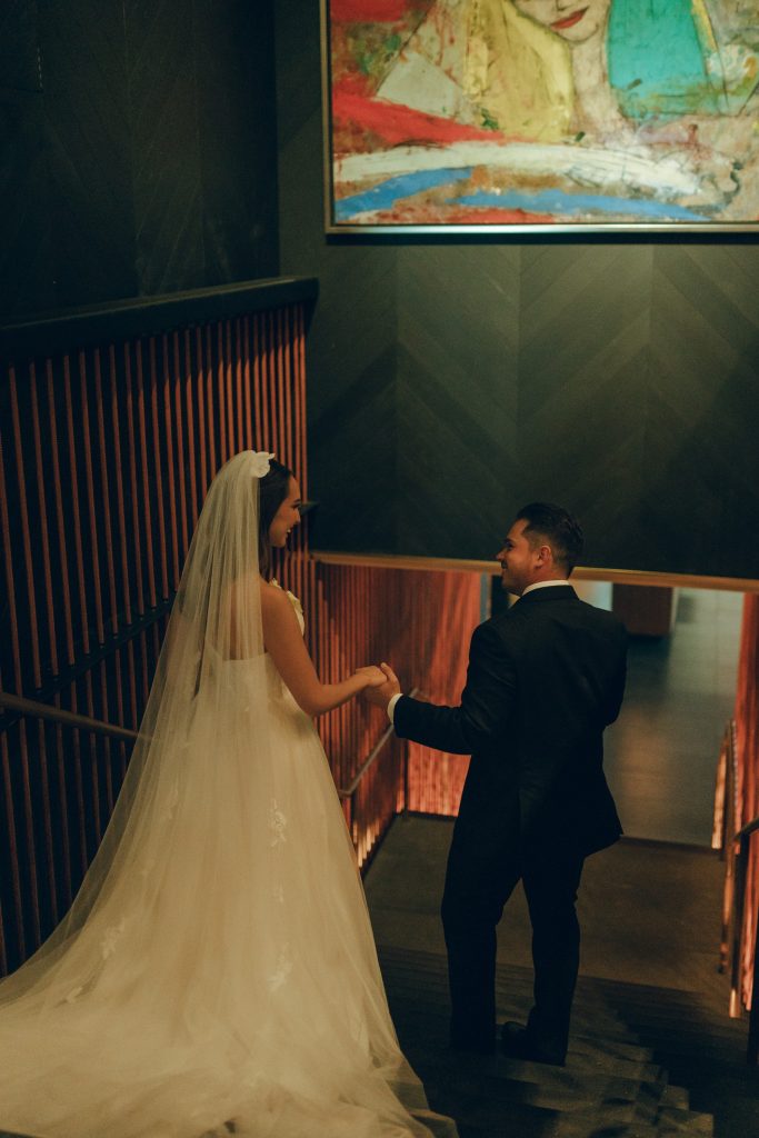 But here’s the moment that set the tone for everything: before the reception even began, Marifer and David slipped away to the Thompson San Antonio for their first look and portraits. Intimate. Just the two of them. And honestly, can we think of a more perfect backdrop for a couple going for classic, chic, and elegant? We cannot.