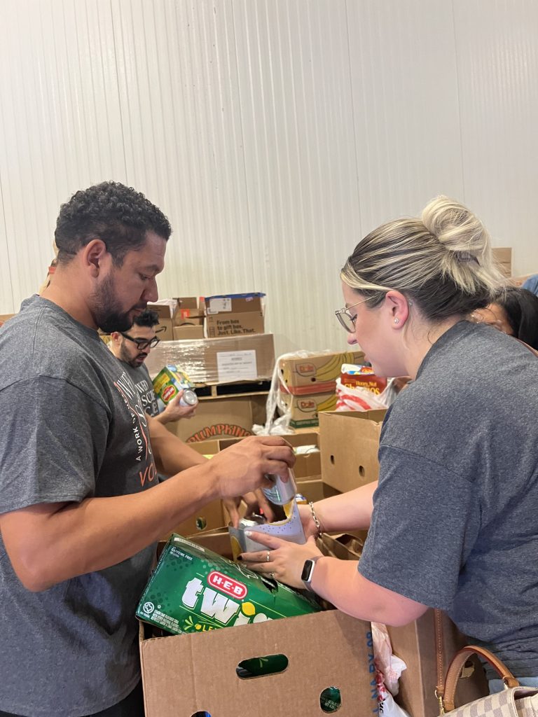 Marco from MBP Photo Booth, Mandy from Infinite Photography SA, Jeanine from Gunpowder Soup, Ále from Petále Haus, and Stephanie from Hyatt Regency Hill Country spent their afternoon sorting through donated food items and organizing them into categories that would create well-rounded meals for families across Southwest Texas and San Antonio.