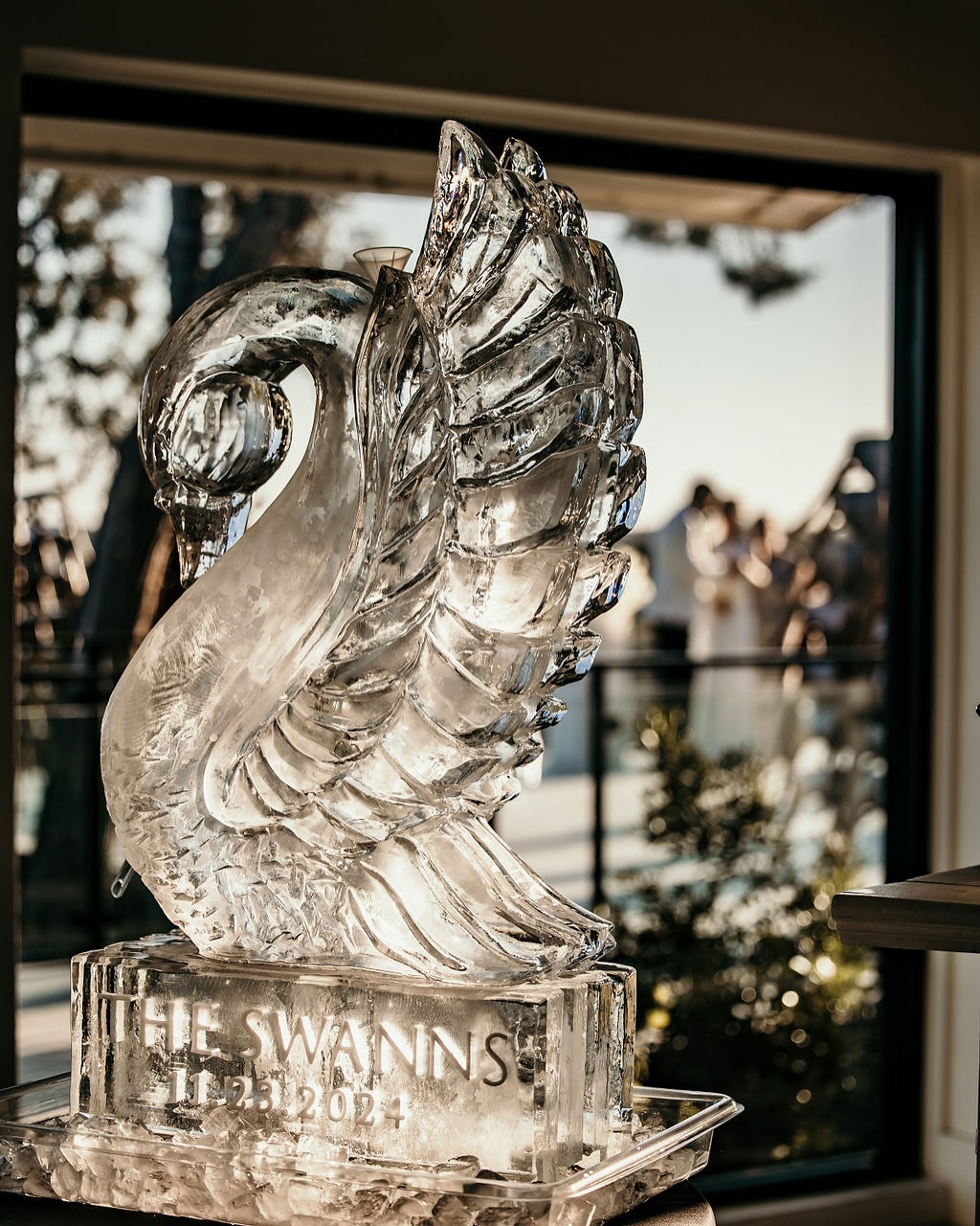 Full Spectrum Ice Sculptures transforms weddings into unforgettable experiences with their exquisite hand-crafted ice creations, serving couples throughout San Antonio, and beyond. Their wedding offerings range from elegant monogrammed centerpieces and champagne holders to showstopping full ice bars that double as practical serving stations for drinks or food displays. As premier ice artists who have "created hundreds of sculptures for weddings," they pride themselves on "limitless possibilities" for customization – whether incorporating floral elements, personal monograms, or completely custom designs that reflect the couple's unique personalities. These crystal-clear ice sculptures not only add a touch of luxury and elegance to wedding celebrations but also create stunning photo opportunities that guests will remember for years to come.