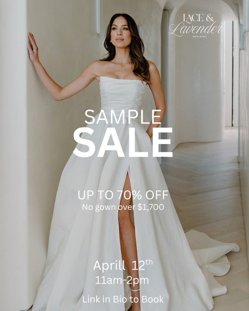 Join Lace & Lavender Bridal for their exclusive Sample Sale on April 12th from 11AM–2PM. Discover stunning gowns at up to 70% off—no gown over $1,700. By appointment only, so be sure to reserve your spot and say yes for less 🤍...